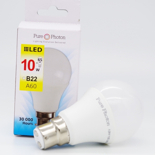 Pure Photon’s 10W retro-fit bulb (bayonet base) delivers a warm light and brightness, similar to a 60W incandescent bulb. It features high output, an anti-glare refractor, all finished in an aluminium and plastic, thermally efficient body. Ideal for living rooms, hallways and kitchens.